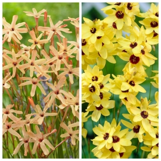 Ixia - Iksja - zestaw 2 odmian w kolorze białym i żółtym - 100 szt. Zestaw zawiera 100 szt. wysokiej jakości cebulek iksji. W skład zestawu wchodzą 2 odmiany iksji: - Iksja Giant - 50 szt. - Iksja Yellow Emperor - 50 szt. Cebule są produkcji holenderskiej. Każde opakowanie...