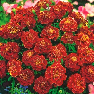 Aksamitka rozpierzchła Bonita Carmen należy do kwiatów jednorocznych o bardzo obfitym i długim okresie kwitnienia. Jest wytrzymywała na niekorzystne warunki, udaje się na każdej glebie ogrodowej. Prezentowana odmiana wyrasta bardzo zwarcie do wysokości 25-35 cm. Na powierzchni krzaczków...