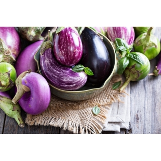 Nasiona bakłażana Posiadamy nasiona bakłażana, ciekawej rośliny, która wydaje jajowate, najczęściej fioletowe, owoce z kremowym miąższem. Sprawdź ofertę naszego sklepu internetowego i wybierz odpowiednią odmianę. Być może zaciekawi Cię oberżynka Golden Egg? Poznaj również odmianę bakłażana Tsakoniki, która zainteresować może ciekawą skórką w nieregularne, biało-fioletowe smugi.