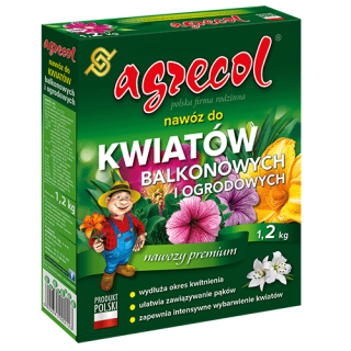 Nawóz do kwiatów ogrodowych Agrecol 1,2 kg Nawóz do kwiatów ogrodowych jest wysokiej jakości kompletnym wieloskładnikowym granulatem przeznaczonym do nawożenia wszystkich gatunków kwiatów ogrodowych. Zalecany do zasilania roślin wysiewanych lub wysadzanych, jednorocznych i dwuletnich, kwiatów...