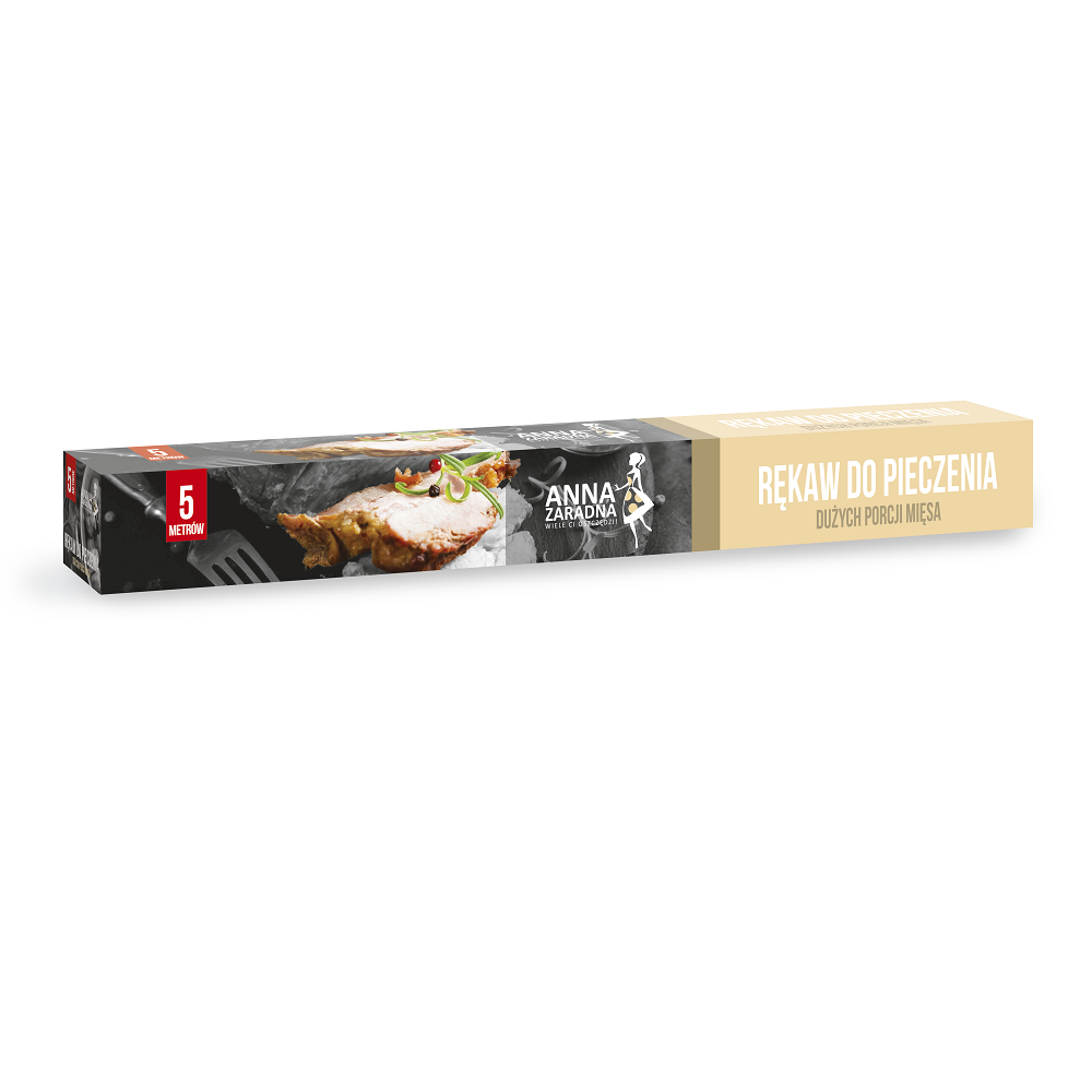 Rękaw do pieczenia to gwarancja uzyskania wybornego smaku i aromatu potraw. Pieczone mięsa, drób, ryby, warzywa i owoce zyskują niepowtarzalny charakter. Nie wysychają, nie tracą nic ze swoich walorów odżywczych. Są kruche, soczyste i pachnące a przede wszystkim zdrowsze. Ta metoda pieczenia nie wymaga dodawania tłuszczu. Porcja zamknięta w rękawie piecze się w sosie własnym. Nadaje się do wszystkich rodzajów mięsa i potraw jarskich. Nie ma znaczenia typ piekarnika. Może być zastosowany nawet w kuchence mikrofalowej. Oferowana wersja jest większa niż typowe produkty. Pozwala na swobodne umieszczenie dużych kawałków miesi lub przygotowania zwiększonej ilości potrawy.