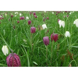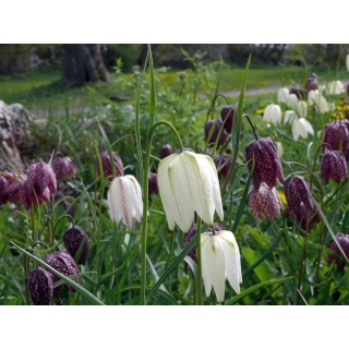 Proponujemy wyjątkową szachownicę Uva Vulpis, znaną w Polsce jako Lisie Grono. Jej fioletowo-pomarańczowe kwiaty w kształcie pękatych, wydłużonych, zwisających trąbek zdobią ogród wczesnym latem. Wcześniej kwitnie dostojna szachownica perska o ciemnych, niemal czarnych kwiatach. Jej liczne dzwoneczki są zebrane w okazałe, szczytowe kwiatostany. Do szczególnie popularnych zalicza się też pełna wdzięku szachownica kostkowata kwitnąca na biało i fioletowo – tę niezawodną drobinkę lubimy za nietuzinkowy deseń na płatkach. Nie sposób też pominąć przepysznej korony cesarskiej! A Ty? Czy wybrałeś już swoją ulubioną szachownicę?
